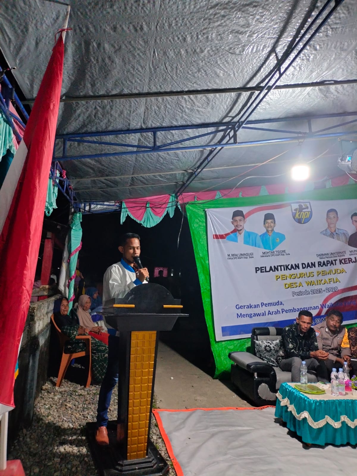 REDLINENEWS– Dewan Pimpinan Daerah Komite Nasional Pemuda Indonesia (DPD KNPI) Kabupaten Kepulauan Sula Maluku Utara menghadiri pelantikan pemuda Desa Waikafia Kecamatan Mangoli Selatan, Sabtu (3/5/2025).