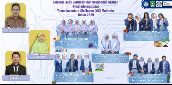 “Lima tim dari SMA Negeri 2 Halmahera Timur, Provinsi Maluku Utara, berhasil lolos sebagai delegasi Indonesia dalam ajang bergengsi Young infentros challenge 2025, sebuah kompetisi inovasi internasional yang di selenggarakan oleh Malaysia dan di ikuti oleh negara-negara kawasan di Asia,” ujarnya Sabtu (/19/7/2025).